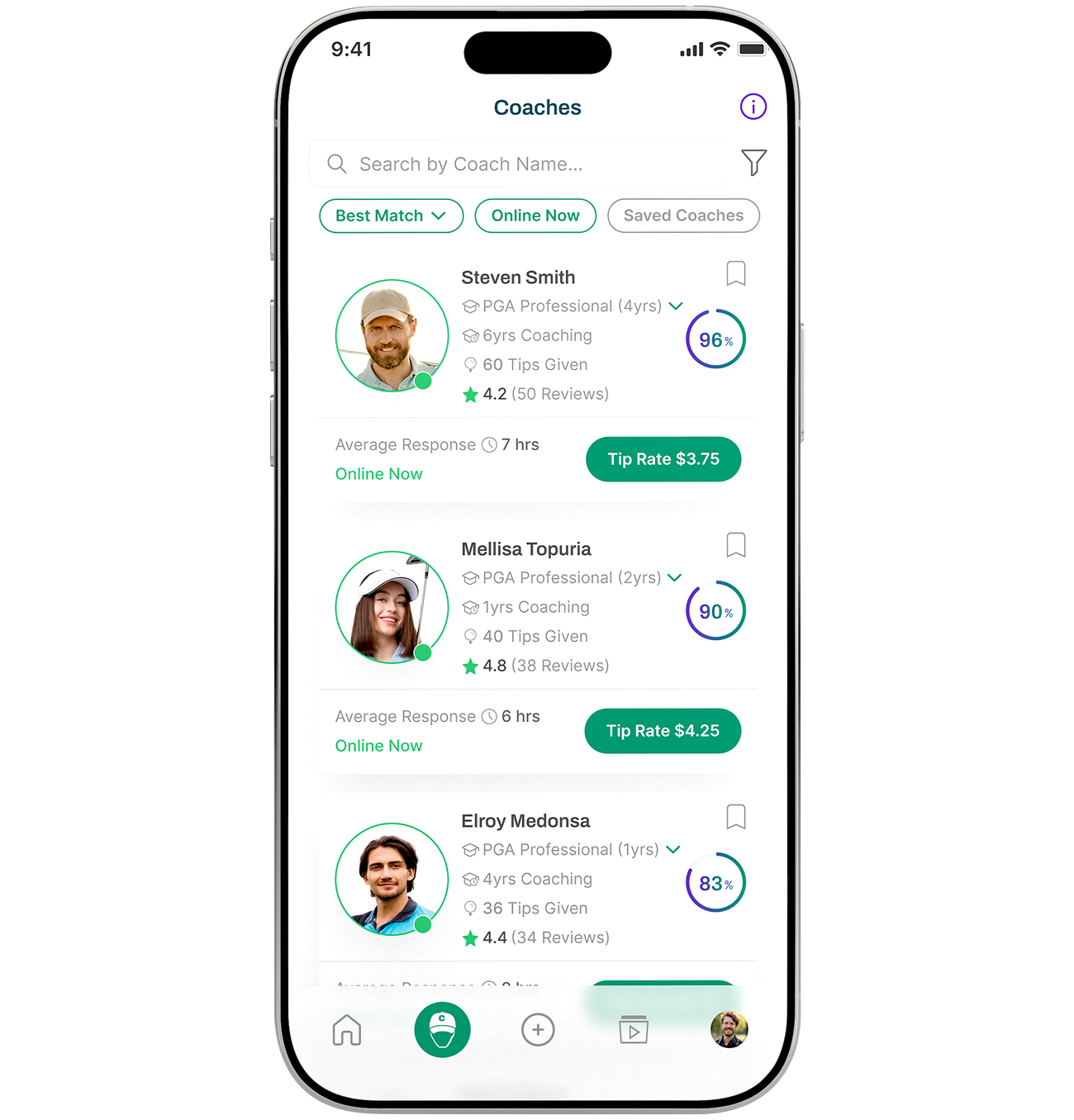 - Matching That WorksMatchIQ pairs you with coaches who truly fit—based on your learning style, swing, and even body type. Skip the fame. Find the right fit for you.